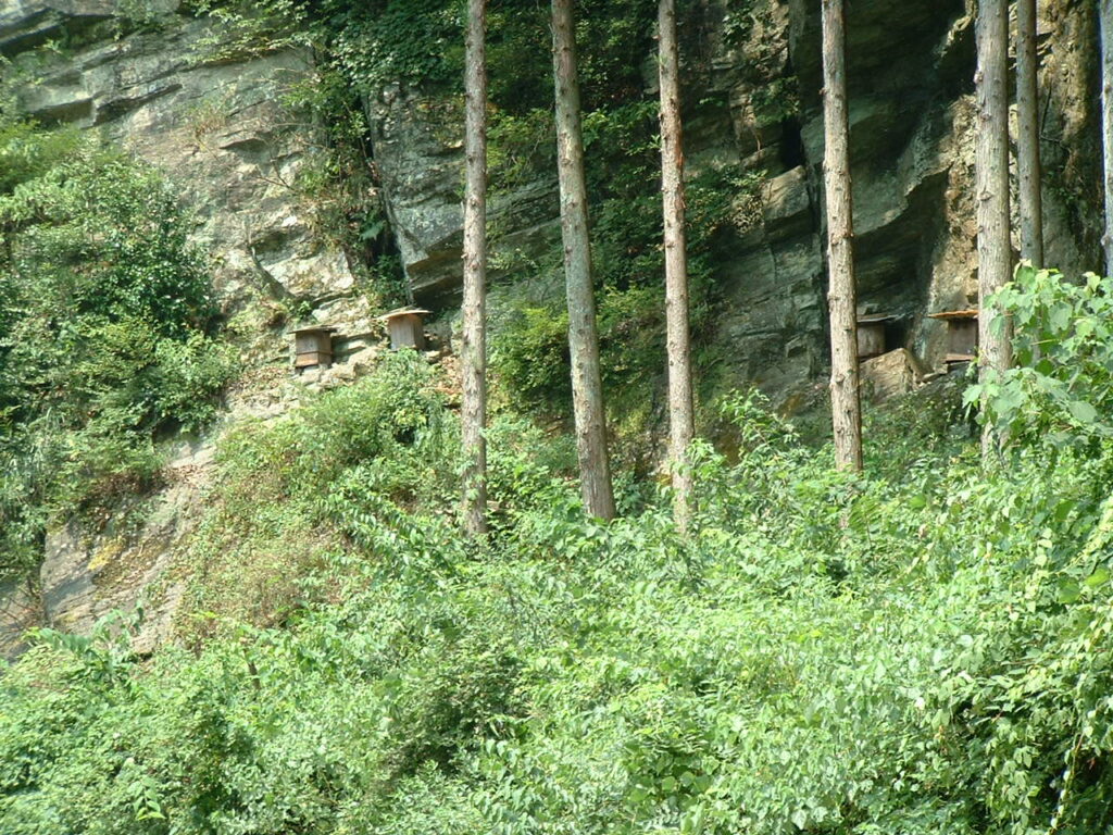 ニホンミツバチの巣は、巣枠を用いず、巣板を自然に下方へ伸ばしていくのが特徴です。 一方、セイヨウミツバチの養蜂では、管理しやすい巣枠式巣箱が一般的に使用されます。 また、蜜を集める花の好みにも違いが見られます。