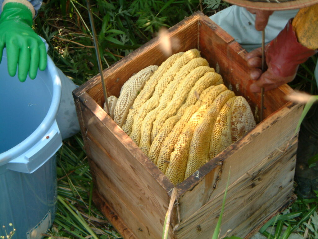 ニホンミツバチはセイヨウミツバチに比べて蜜の貯蔵量が少なく、群れの数もたくさんはいないため、冬を越すための食料を十分に確保しておく必要があります。