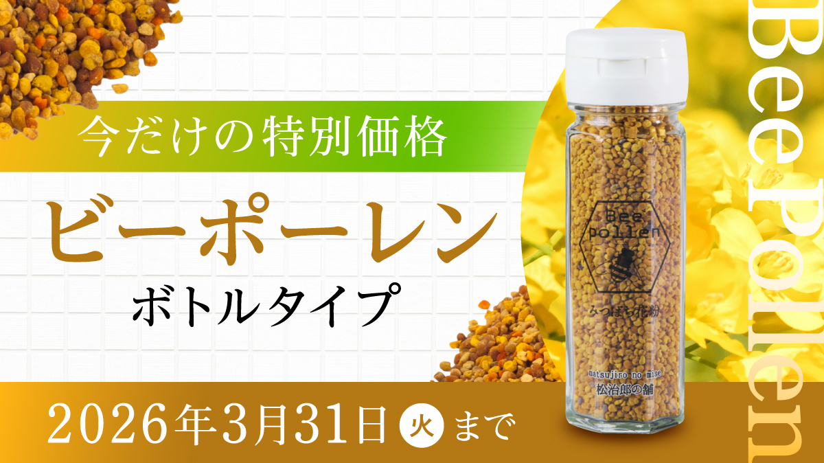 みつばちが作りだすスーパーフード みつばち花粉(ビーポーレン:BeePollen)は様々な栄養素が含まれます。3/31までの特別価格